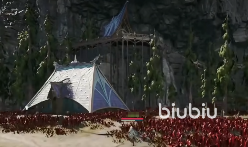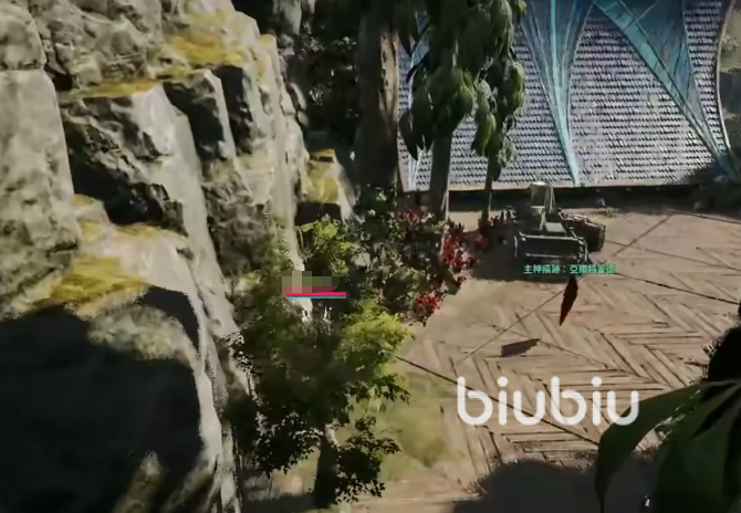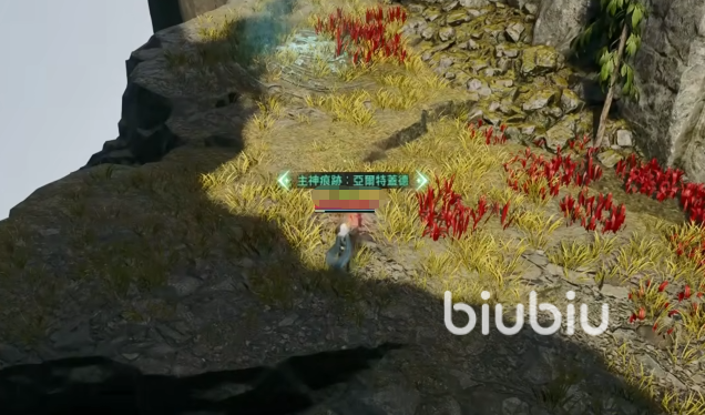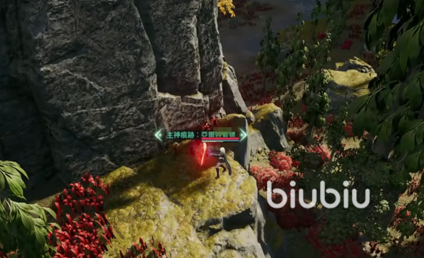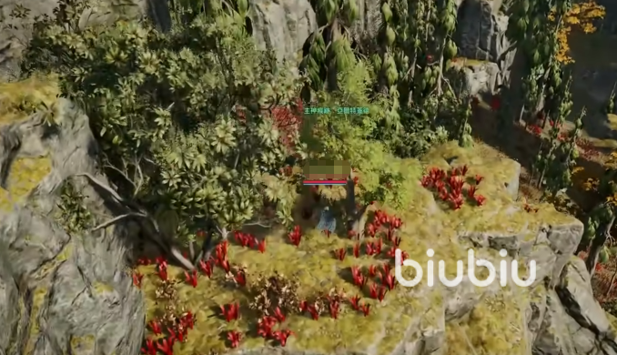 19、接着起身向上飞,不需要到最顶端的,在靠右侧的一个小山崖上,树下藏着个道具。