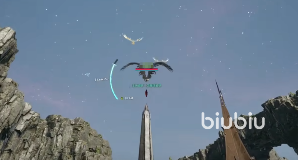 1、使用飞行坐骑,爬升到空中,可以看到柱子顶端是有个道具在的,靠近就能获取。
