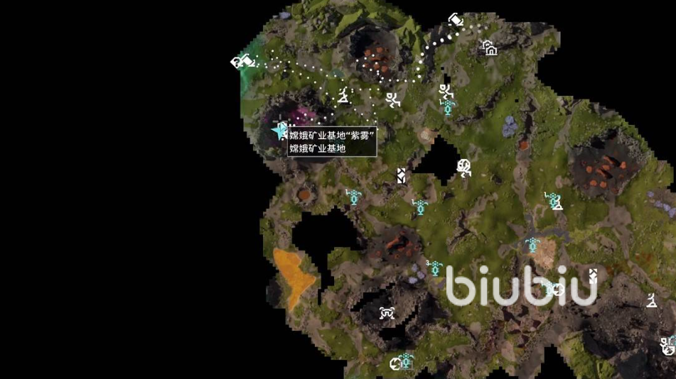 一般情况下,很多道具是可以通过配方站获取,或者在轨道获取发射器这里解锁,但是这个道具是比较特殊的,我们只能通过搜索指定地点,查找图纸得到它。首先要解锁地图功能,然后往外围探索,在大地图上偏向于左上方的位置,寻找嫦娥矿业基地,名字叫做“紫雾”。大家可以搭配下图进行查找,具体位置已经展示出来了。