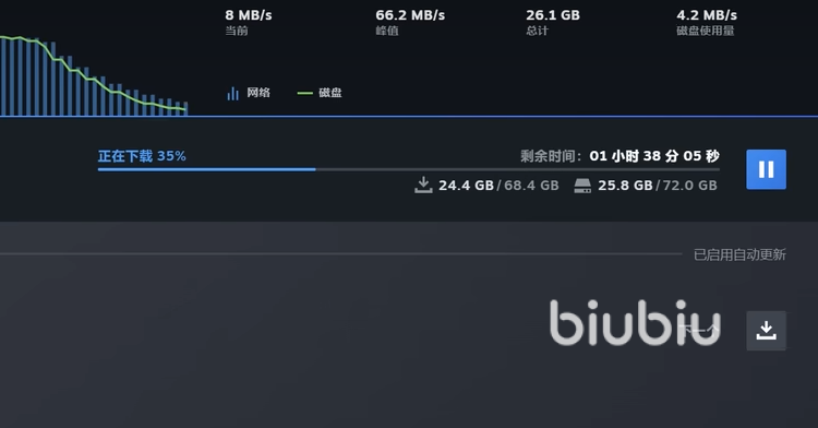 这个新游内存并不小,而且是在Steam平台登录的,下载的时候尤其要慎重对待网络问题,要是线路不够通畅,效率也不高,速度只有几mb每秒,得花一两个小时才能下载。要是找到好办法优化线路,拓宽数据传输通道,能节省不少时间的。
