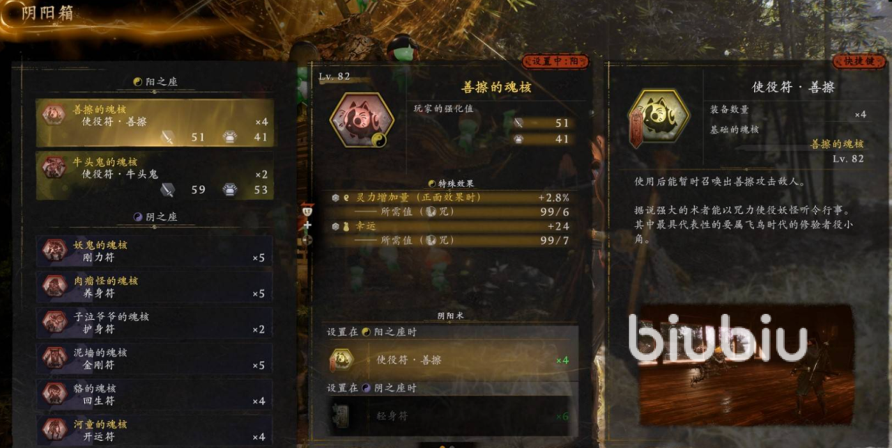 魂核是击败妖怪后掉落的特殊物品,玩家只需要在神社的阴阳箱中装备魂核,就可以通过阳之座释放出妖怪技,或者召唤出妖怪攻击,若是装备在阴之座可以使用符咒,来强化战斗能力,魂核的等级决定攻防加成数值,稀有度会影响词条数量,通过不同的魂核效果,大家可以有搭配出攻击、辅助等不同的策略战斗方案。