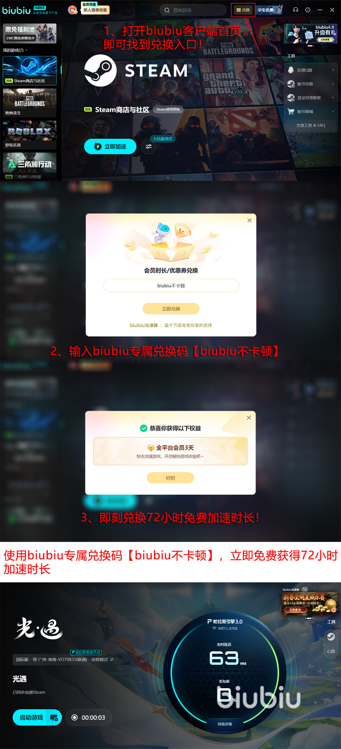 在免费试用方面,有两项主要的活动,第一是新注册号免费加速24小时。第二项是通过兑换码【biubiu不卡顿】兑换三天加速时间,每个号都能用一次。这就相当于给新人直接提供了96小时,可以彻底打消性能方面的疑虑。biubiu打造的社区人气非常高,而且免费向所有用户开放在这里,能够随时参与各种话题聊天,还可以发表心情动态。玩游戏时遇到各种问题在这里都能找到答案,还能提前了解很多玩法方面信息。