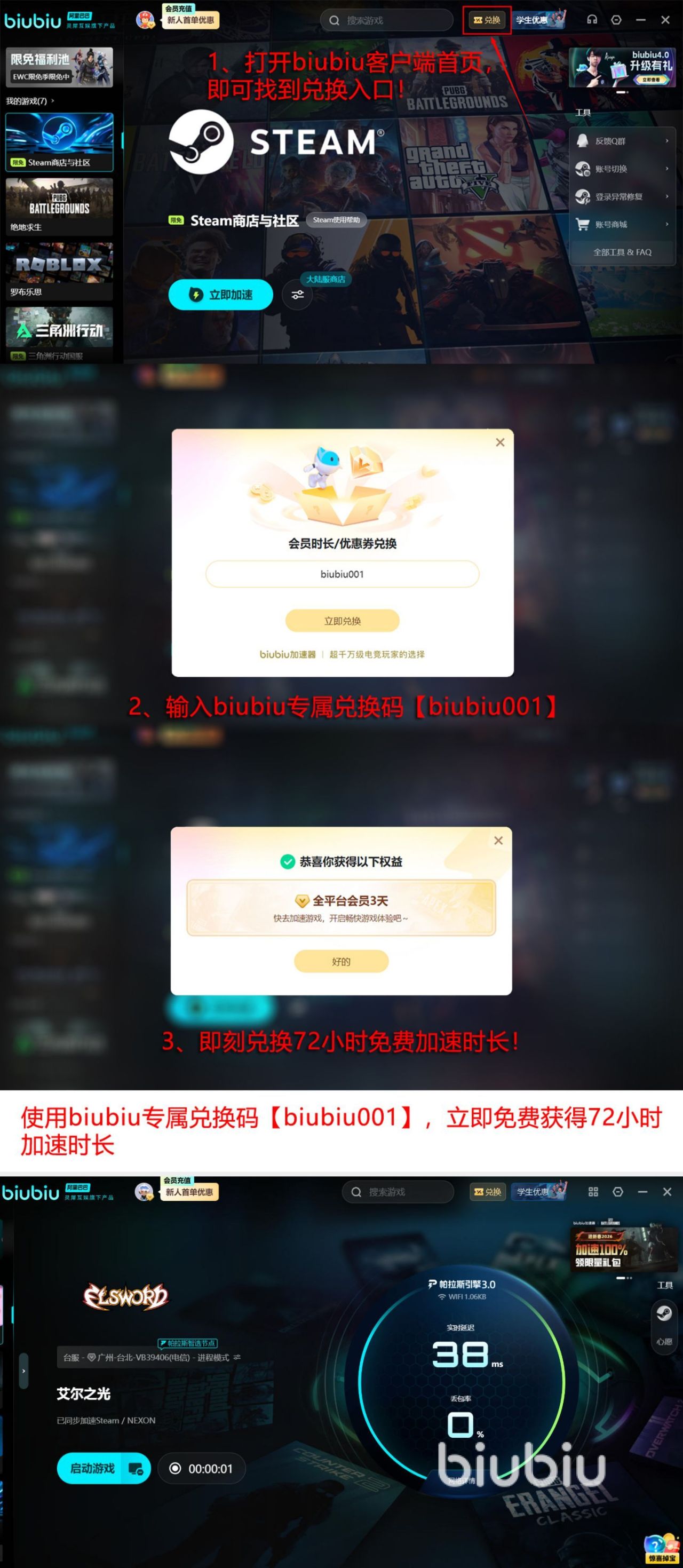 随着玩家在玩的过程当中比较注重体验,也有了这款备受好评的加速器,背靠阿里巴巴灵犀互娱所打造,还将自研的帕拉斯引擎升级为3.0版本,所以在体验的过程当中更流畅,也成为了pero战队指定训练时的一款应用。如今想要体验的话,从来没有注册的用户有福了,因为在注册登录以后,就能够免费加速24小时,如果属于新老用户的话,也可以通过输入兑换口令【biubiu001】的方式就能够免费享受加速三天的时长,加在一起,相当于第一次注册的新用户可以加速96个小时。