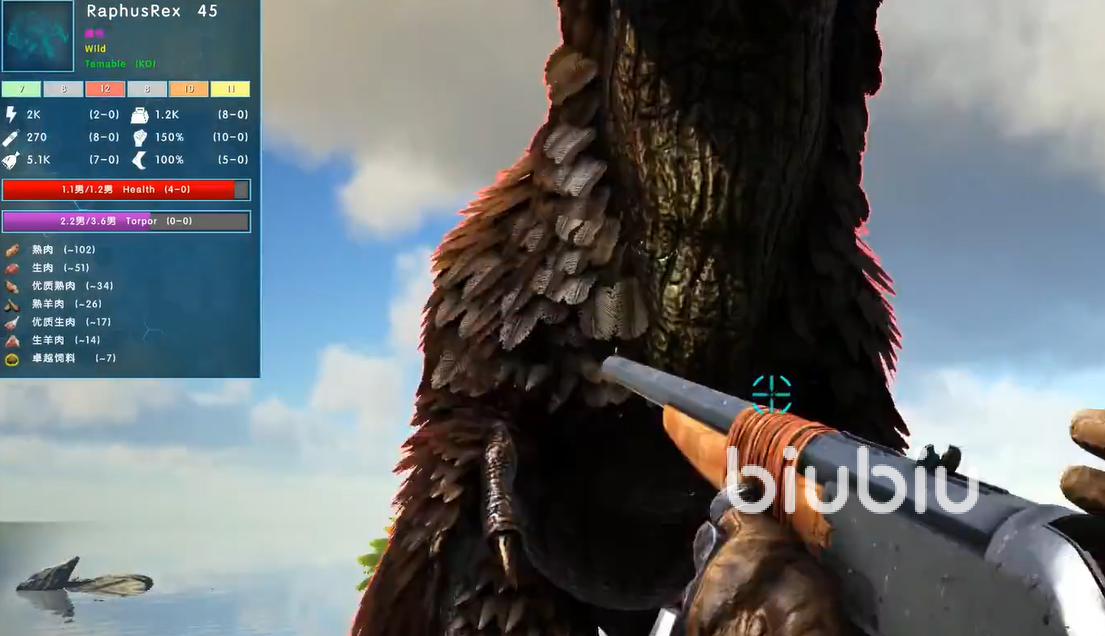 推荐使用悬浮艇实施空中压制,将其固定于安全高度后持续施放麻醉箭,可大幅降低战斗风险。成功击晕后,其物品栏将自动附带专属面具皮肤,属于内置彩蛋内容。食物兼容性良好,支持生肉、熟肉、优质肉、羊肉及卓越饲料,其中卓越饲料效率最优;无氧气条设定,水下行动不受限制;骑乘无需鞍具,可直接交互登乘,节省资源消耗。