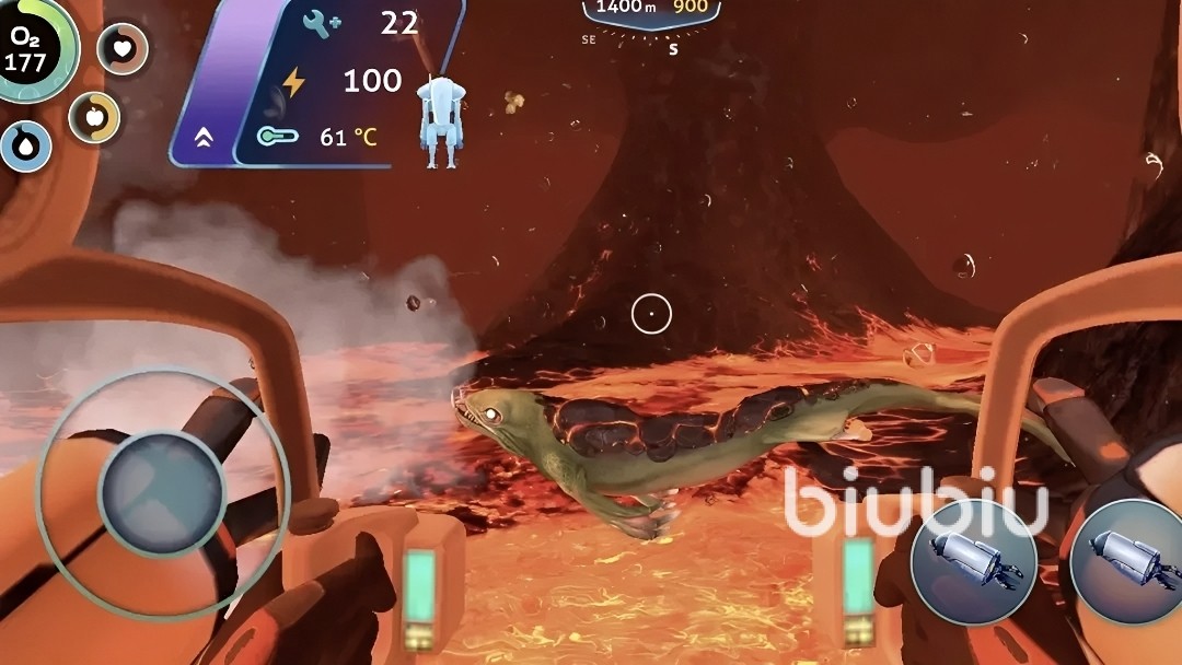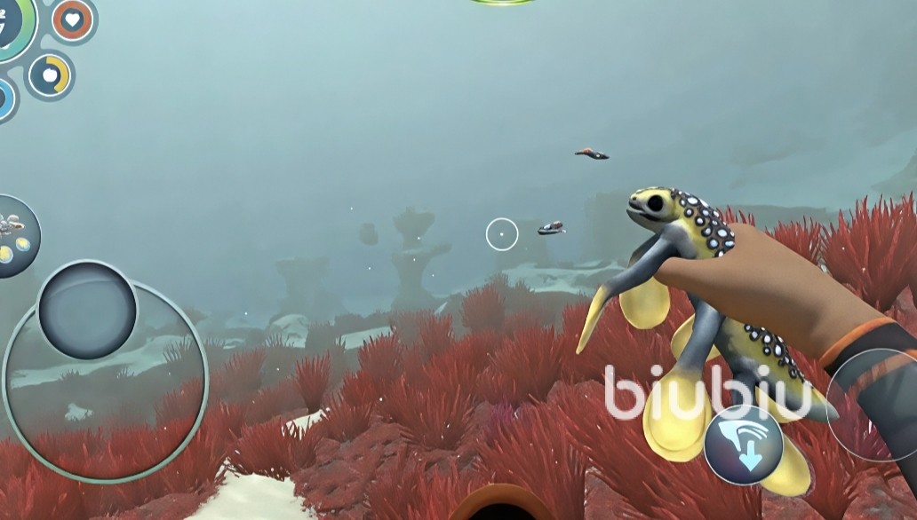 中深层海域开始呈现复杂环境特征,包括高温熔岩田、幽闭洞穴系统及生物荧光水道等特殊地貌。随着深度增加,缺氧风险显著上升,能见度下降,高威胁掠食者频繁出没。玩家需提前储备足量氧气罐、高容量电池组,并配备近战武器与强化推进器,以应对突发战斗与长距离潜行需求。