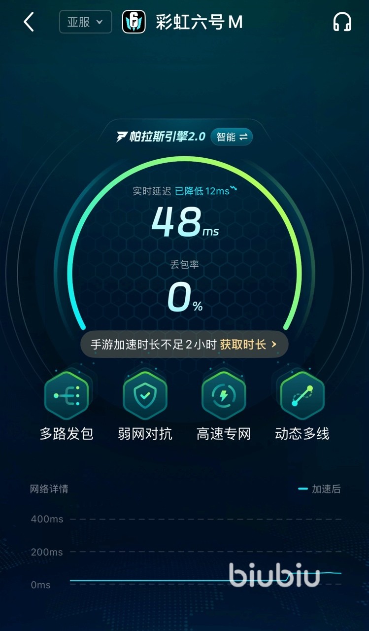 硬件达标只是第一步,网络质量则直接决定实战表现。由于《彩虹六号》手游国际服服务器部署于海外,国内用户直连常面临高延迟、频繁丢包甚至无法登录等问题。此时,专业级网络优化工具便成为关键支撑——biubiu加速器专为跨国联机场景深度优化,提供高效、低抖动、高可用的专属通道。