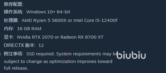 从现阶段的情况来看,该游戏应该会在2026年第二季度上线。整体游戏所需要的配置不算很低,推荐处理器是酷睿I5-12400F以上,内存的话则是需要16G的内存。显卡则需要RTX2070。这些配置才可以保证游戏能够流畅的运行,且可以保证有着较高的画质。