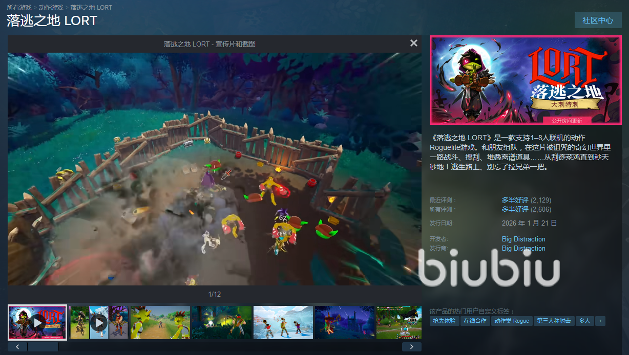落逃之地现在已经在steam平台正式发售了,上线日期是2026年1月21日,该游戏采用了像素风格打造,大量采用了高饱和色彩,带来的是喜剧暴力美学游戏体验。游戏的最大亮点也是自身的核心玩法就是肉鸽元素加多人混战的融合模式。游戏支持1~8人进行联机,组队可以获得更欢乐的游戏体验。游戏采用了实时语音加号角互动的沟通模式,吹响号角后全队都将获得BUFF,但如果不按正确的节奏去吹,有可能起到反向的效果。游戏中融入了很多物理喜剧的表现,例如可以将队友击飞,可以去掀boss的假发,还有可能引起环境的连锁爆炸等,这样导致的团灭笑点直接拉满。