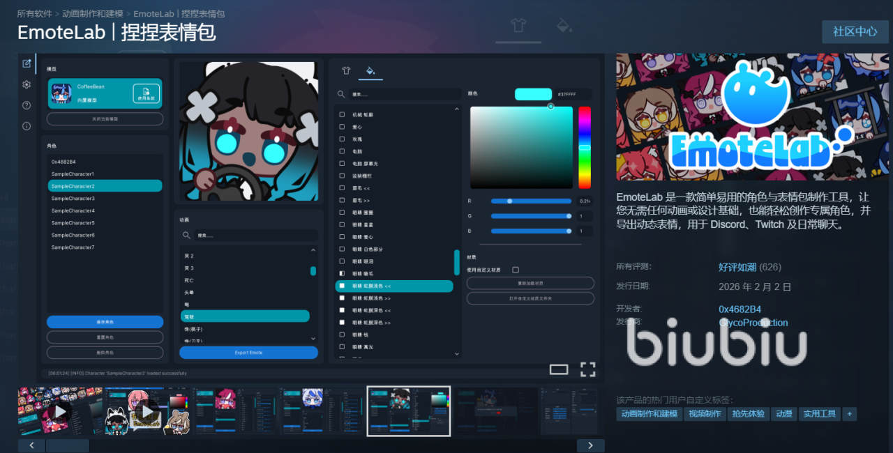 2026年02月24日 15:01 来源:辉月生水精灵EmoteLab中文名是捏捏表情包,是一个自助生成表情包的软件,有高达98%的好评率,是零基础用户的创作福音,可以轻松实现表情包自由。不过由于它登录在steam,所以小编带来EmoteLab加速器推荐。首先于跨境网络的特殊性,国内玩家直连的时候,已经遇到登录失败的网络波动,甚至是创作完成素材都保存不了,还无法同步到云端。此时首选用综合实力排行第一的biubiu加速器,就能帮你轻松登录与流畅使用。