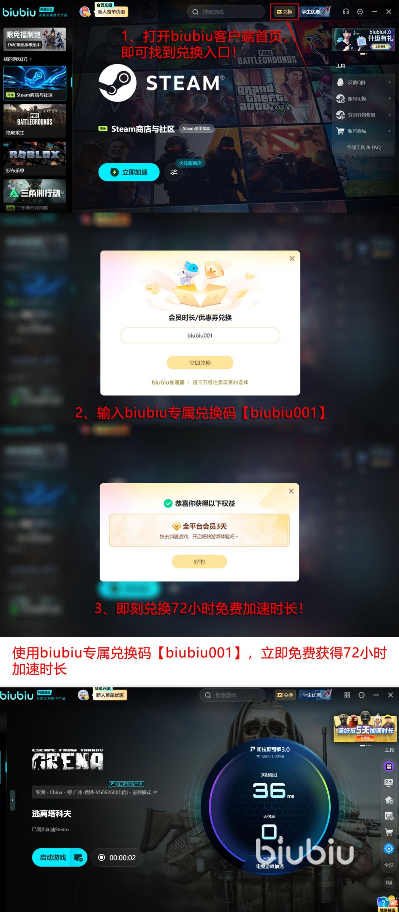 其实在很多高强度的场景中都得以验证,还获得了很好的口碑。不过最让普通玩家关注的那就是福利方面,也携带着两种福利方式呈现在大家的眼前,首先就是如果新人第1次注册的话,那么就会拥有24小时的加速特权。所有人都可用【biubiu001】获得三天的免费时长,这两种方式对于新人来说都能够享受,那么免费的时间就可拉长至96小时。