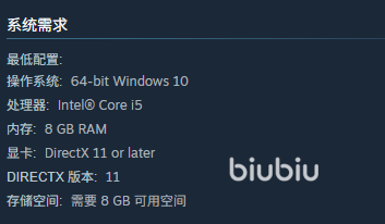 这游戏的配置要求也不会太高,所以大家也不用太担心配置,预测90%以上的玩家都是可以带动这游戏的,那么在不用担心配置以后,接下来就可以来解决另一个问题了,这个问题就是游戏的购买问题,想要购买游戏需要用到biubiu加速器。