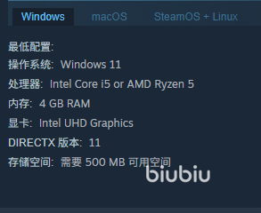 首先要了解的是游戏配置,有关配置最低配置需要带有核显的i5处理器在加上4g的内存在给到500mb的存储空间即可,推荐配置只需要i7级别的处理器,加上1060显卡和8g内存即可,存储空间不变,这就是配置要求了。