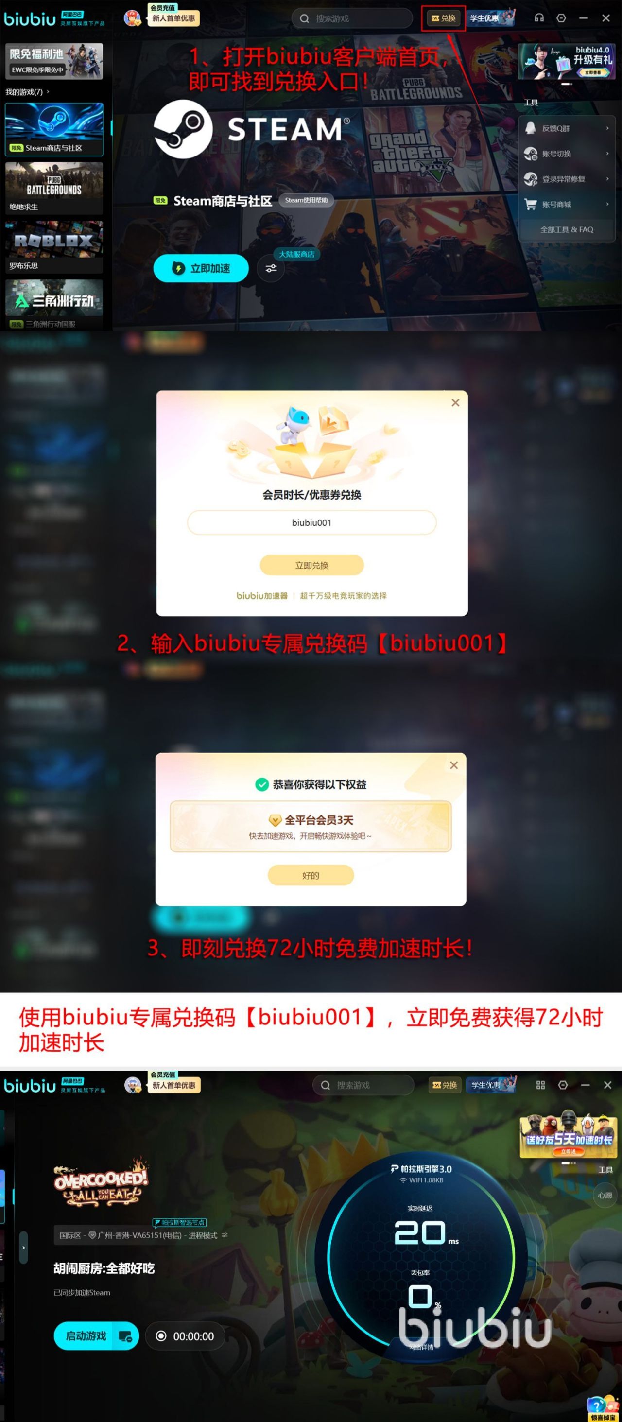 2026年02月25日 14:46 来源:天启次瓦斯弹支持1到4个人体验的胡闹厨房游戏,通过成为游戏当中的厨师角色以后,就可以在动态厨房场景当中完成一系列的流程,无论是独自体验或者是多人,都应该保障流畅的网络。那么胡闹厨房联机很卡是为什么呢?考虑到这种情况一般与网络不佳有关,所以大家可以在这种情况下,推荐下载行业综合性能最出色的biubiu加速器。