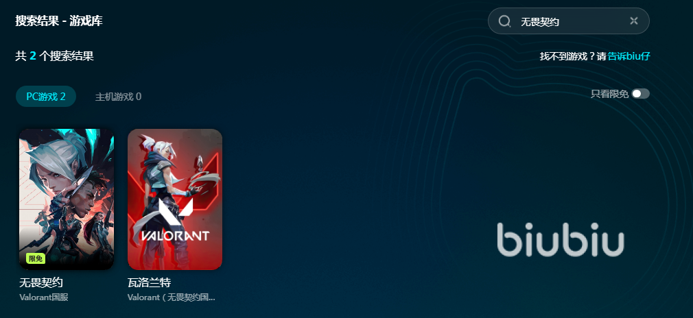 启动biubiu后,在搜索栏输入“无畏契约”,系统将自动匹配最优加速线路。当前平台同步开放《无畏契约》限免加速通道——即使会员状态已过期,或已成功领取过兑换码,仍可在活动期内享受无门槛免费加速服务。对新手而言,稳定的低延迟环境尤为关键:技能释放与枪械压枪需高度协同,网络卡顿易导致技能施放延迟、准星偏移或开火指令丢失,从而放大操作失误率。借助biubiu保障网络底层通畅,玩家可更专注训练反应、走位与团队配合等核心竞技能力。