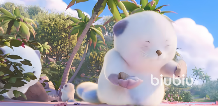 羞羞獭外观辨识度极高:通体呈浅青蓝色绒毛,腹部覆有纯白柔软皮毛,头顶自然生长一片形似荷叶的角质结构。其核心行为模式围绕“高敏感性”展开——遭遇突发声响或视线接触时,会本能使用贝壳或小铲遮挡面部;日常活动高度依赖水域环境,在鲸落浅滩等湿地地形中常以群体形式出没,具备明确的栖息地偏好。