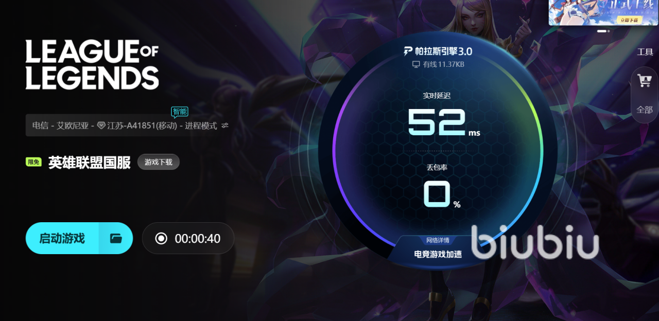 解决上述问题,需结合网络传输优化与本地运行环境调优。biubiu加速器完成重大版本迭代,其帕拉斯引擎3.0模块支持毫秒级网络路径探测与智能路由切换,可显著降低UDP数据包往返时延(RTT),实测在高峰时段将平均延迟压缩至15ms以内。该方案已联合职业选手Aixleft开展专项适配测试,针对14.13及以上版本新增的技能判定逻辑与服务器同步机制进行参数校准。新注册用户默认享有24小时全功能试用权限;输入激活码【biubiu不卡顿】可额外领取72小时高级服务时长,用于深度验证加速稳定性。