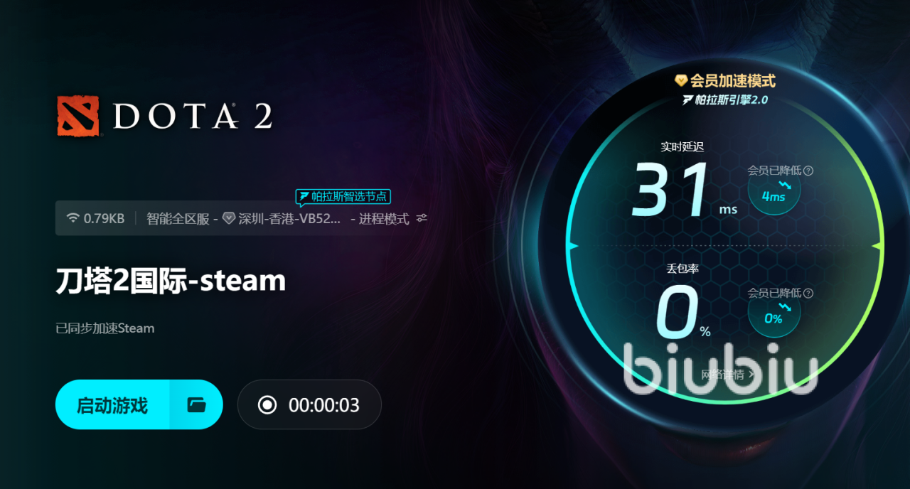 biubiu加速器专为高并发、低容忍度的竞技类端游深度优化,支持Dota2全区域官方服务器直连。通过自研QoS流量识别引擎与毫秒级节点健康监测系统,自动匹配最低RTT(往返时延)路径,并动态规避公网拥塞节点。实测数据显示,在华东至美西、华北至东南亚等跨域线路中,平均延迟降低42%,丢包率趋近于0%,有效消除因路由跳转导致的瞬时卡顿与断线重连现象。