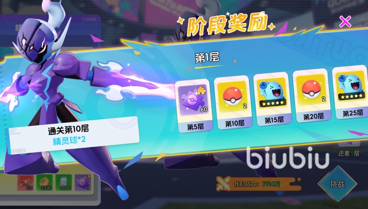 除单层胜利奖励外,两大模式均设有阶段性目标奖励体系。玩家达成指定层数(如第10层、第20层等)后,可即时领取对应阶段宝箱,内含宝钻、高级精灵球、焰红装备、SP宝可梦碎片等高价值资源。其中,SP宝可梦本体与顶级装备主要依赖此途径稳定获取。此外,完成全部场地对决的阶段目标后,还可额外激活终极大奖,包含稀有宝可梦专属装备等限定奖励。