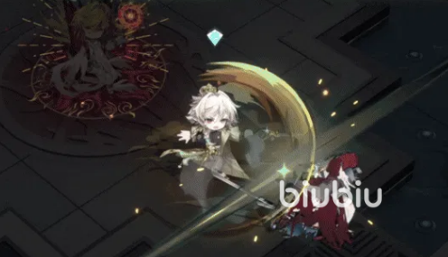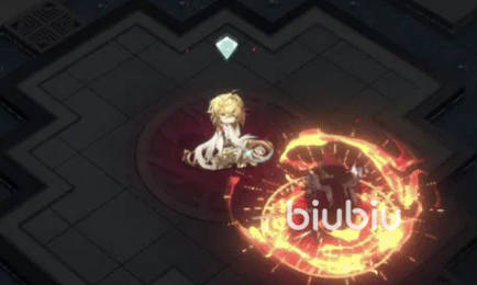 核心输出逻辑依托被动【光耀古今】:当处于“天时往复”状态时,若范围内敌人被我方其他角色攻击并受创,太阳神鸟将自动发动一次礼弹追击,造成攻击力百分比的构素伤害,并叠加“灿金”层数;每层“灿金”提升后续追击基础伤害,叠满5层后,追击额外附带构素伤害;若此时“四季同鸣”状态生效,该追击还将触发小范围溅射,对目标相邻单位造成50%追击伤害。此机制使他在群怪战、AOE压制及多目标衔接场景中具备极高战术价值。