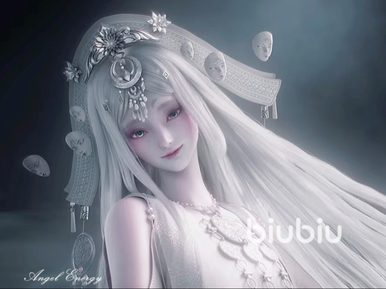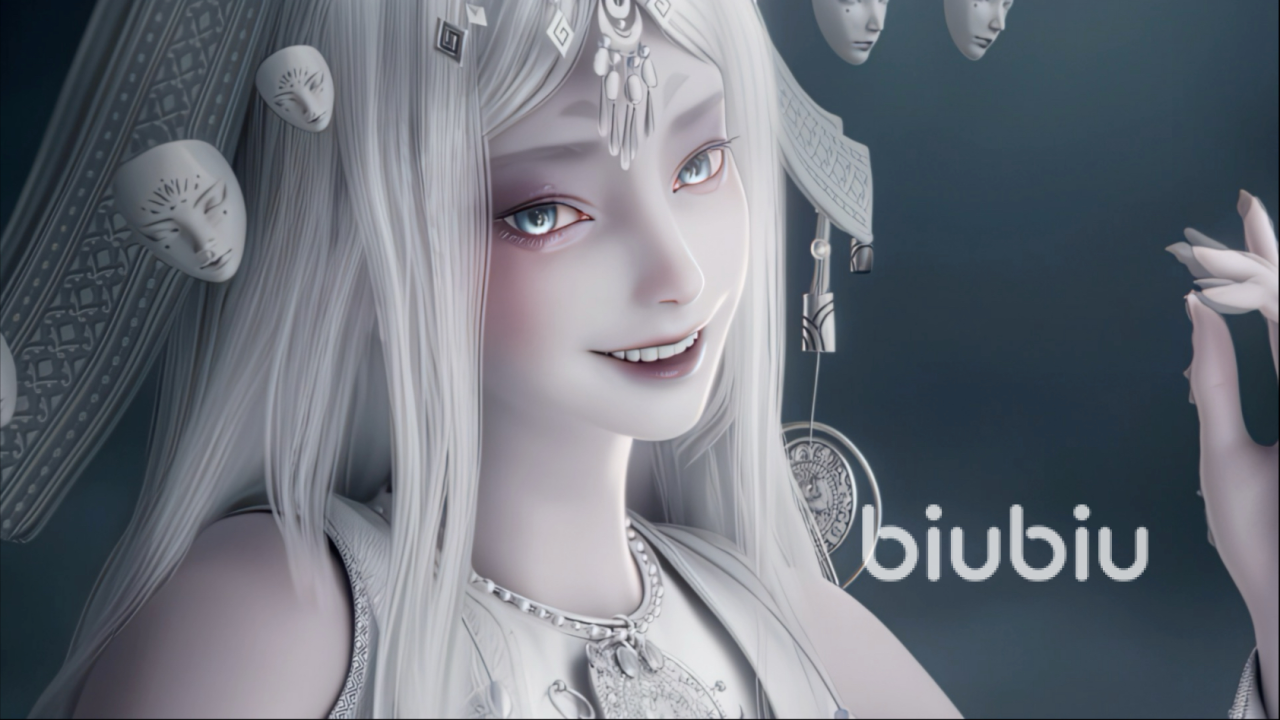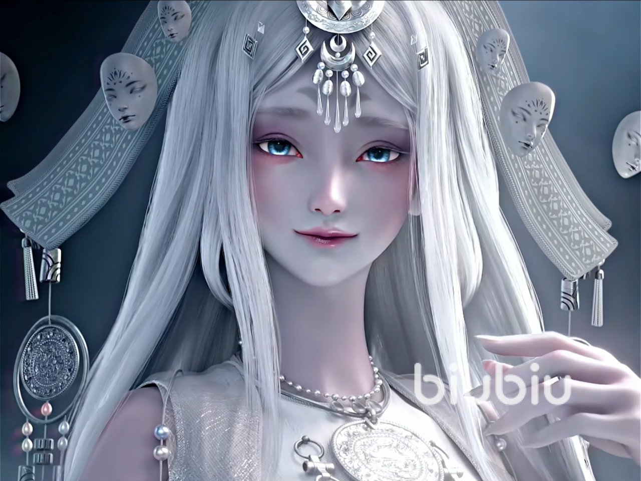 在《七界梦谭》的世界观中,孟婆是镇守阴阳交界的重要神明,其核心职能延续了传统民俗中的经典设定:执掌孟婆汤,助亡魂涤尽前尘、转世轮回。但不同于刻板印象中苍老肃穆的形象,本作对孟婆进行了年轻化、艺术化的再创作。其人物建模采用少女体型,面容清丽而富有神采,整体视觉风格既尊重文化原型,又注入符合当代审美的表现力。服饰方面,以中式古典剪裁为基础,融合苗族银饰工艺元素:银白长发配以繁复华美的冠饰,冠上缀有多面异质面具,强化其通晓幽冥、统摄记忆的神性;颈部佩戴典型苗族银项圈,衣料纹样亦暗含少数民族图腾细节,使角色兼具文化底蕴与视觉辨识度。