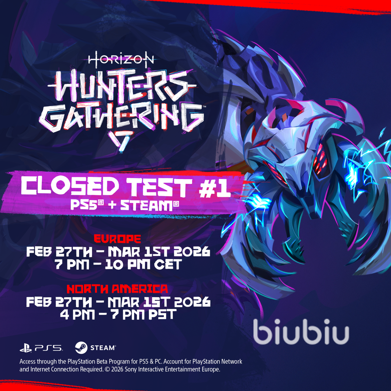 该作首次封闭测试时间终于官宣了,就在2026年2月27号到3月1号一共三天,不过得泼盆冷水,这次只面向北美和欧洲地区而且是PS测试计划的成员才能参加,平台是PS5和PC。服务器开放时间也不一样,北美是北京时间早上8点到11点欧洲是次日凌晨2点到5点,报名通道2月27号关闭,符合条件的兄弟抓紧冲还来得及。