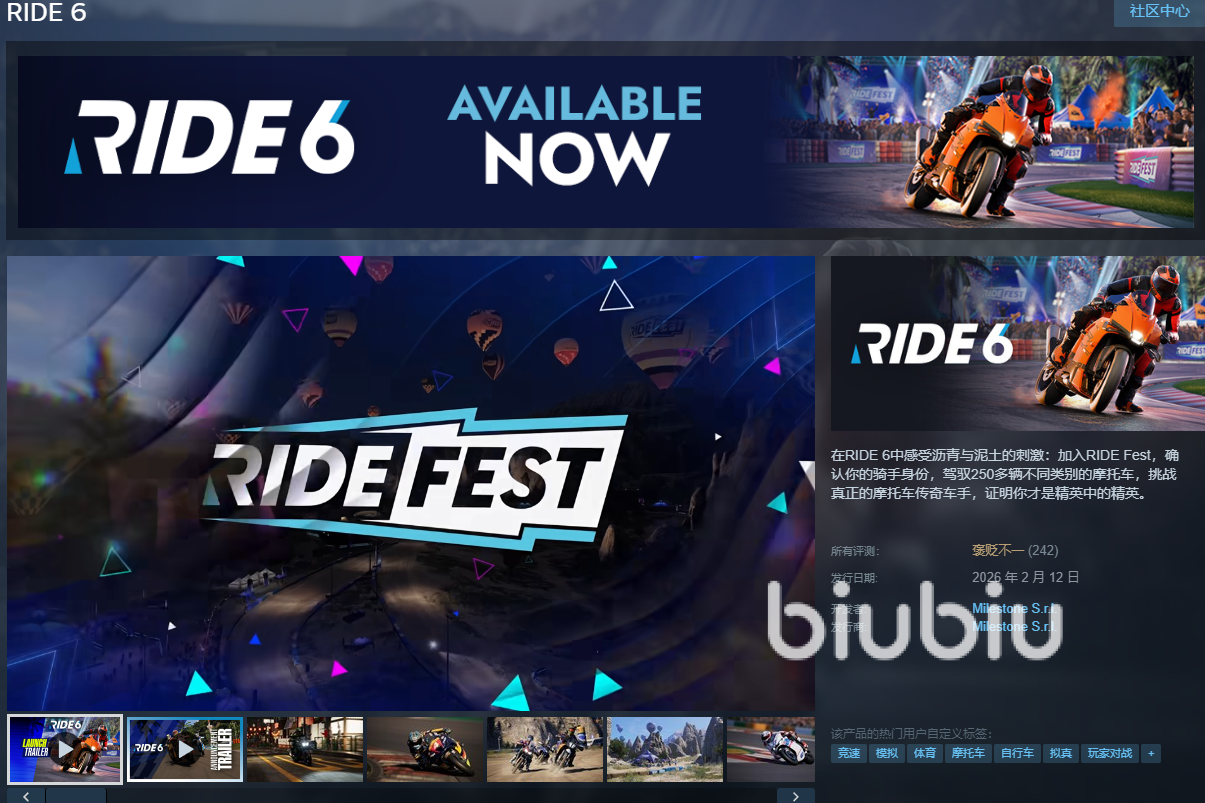 2026年02月26日 14:22 来源:狂兽其素利普RIDE6上线时间什么时候?这是个摩托车模拟竞速游戏,也是“极速骑行”系列第六部正统续作,不仅仅是骑乘那么简单,更是关乎到玩家们,骑上摩托车后会成为一个怎么样的人,在这里能体验到速度与激情,很多朋友可能对该作品上线时间还不太清楚,接下来就是详细介绍。这种竞速作品对网络要求很高,biubiu加速器是当前综合性能最强的加速工具,建议配备一个。