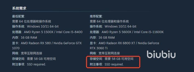 这款作品的体量不小,从它的配置信息可以看到硬盘空间需求有58GB,并且最好是安装在固态硬盘(SSD)上,因为固态往往比传统机械键盘有着更高的读写速度,现在有的专线传输输出已经超过传统机械键盘了。体量大意味着在下载安装的时候需要与平台服务器保持一个稳定的传输,一旦网络质量不好,或者本地和服务器之间的中转节点过多就会出现下载受限乃至中断的情况。有人会反复暂停再继续,但如果底层的网络没有得到优化,其实治标不治本,甚至还容易出现文件损坏的情况。