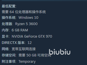 这个配置放在现在也是比较高的,至少有一部分玩家的配置达不到这个要求,这就是游戏的配置情况了,在知晓配置后还需要了解游戏的购买方法,想要买这游戏那就需要加速器,这里推荐使用biubiu加速器这行业综合性能第一的加速器进行加速。