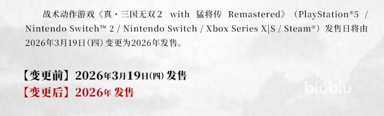其实2025年9月下旬发布了真三2复刻版的实机演示,当时就公布了上线时间是在2026年3月19日。不过随着发售日临近,官方在2026年1月26日宣布延期,变更后的时间是2026年发售,没有透露具体的时间。