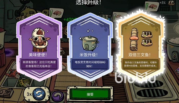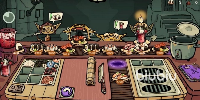 游戏内,玩家需应对各类哥布林顾客提出的差异化订单需求——涵盖寿司口味组合、制作时效、食材搭配等多个维度。操作失误将直接影响订单完成率与金币收益,而金币又是升级厨房设备、解锁新卡牌、强化角色能力的关键资源,构成完整的成长驱动循环。