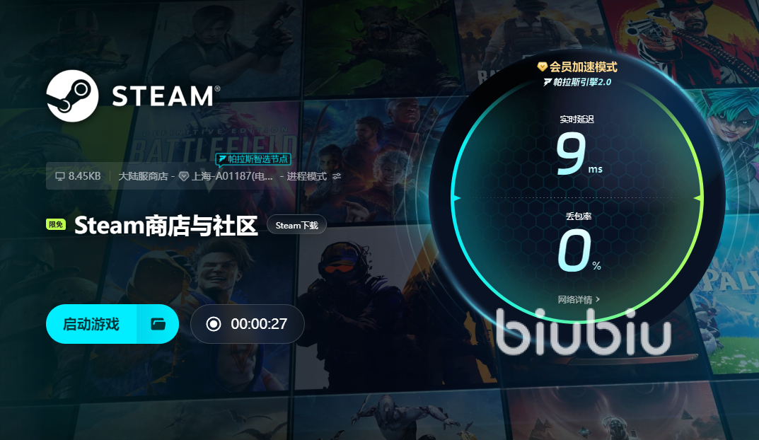 操作流程简洁高效:用户完成客户端安装与账号注册后,仅需在游戏库中勾选目标应用,点击“一键加速”,系统即自动完成节点协商、隧道建立与流量调度全过程。支持Windows、Android双平台并行加速,兼容Steam、WeGame、腾讯手游助手等主流运行环境。针对不同地域用户,biubiu持续扩容节点容量并优化BGP路由表,确保高峰时段连接稳定性。值得一提的是,新用户首次注册即享24小时免费加速时长;激活专属兑换码【biubiu不卡顿】,还可额外获得72小时服务权益,总计96小时,覆盖完整体验周期。