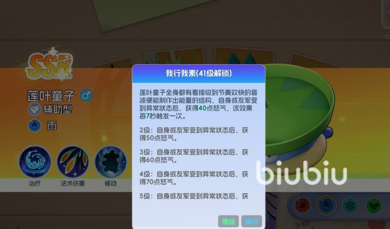 41级解锁的被动【我行我素】进一步强化其战术循环效率:每当自身或任意队友陷入异常状态,莲叶童子立即回复怒气值,冷却时间为7秒。该机制大幅缩短大招释放间隔,在高等级阶段常出现敌方主力仅释放一次大招,而莲叶童子已完成两次甚至三次【求雨】覆盖的情形。配合其专属生存向技能——提升自身最大生命值与防御力,莲叶童子在前排承伤与后台支援之间取得良好平衡。
