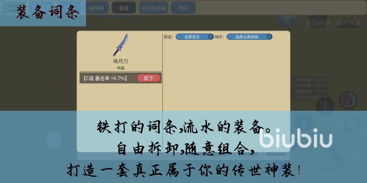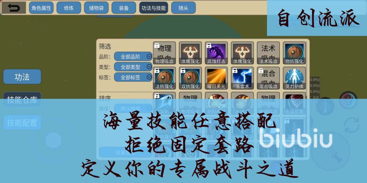 装备系统支持深度自定义:所有词条均可自由拆解、重组,适配不同战斗场景;功法库涵盖剑修、法修、体修(肉盾)等多元流派路径,每条路线均有独立成长逻辑与克制关系。玩家通过反复调试配装组合、优化技能协同、研究镜像对战数据,逐步打磨出高胜率构筑方案。这种强调脑力博弈、弱化操作与时长依赖的设计,使游戏天然具备强传播属性,上线后有望在修仙垂类社群中催生大量镜像分身讨论与流派复盘内容。