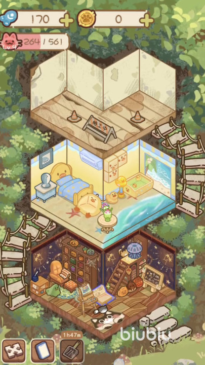 家园系统支持高度自定义装修,玩家可自由划分功能区域,包括喂食区、游乐区、休息区与装饰展示区。海量家具分批次开放,涵盖日式榻榻米、北欧风地毯、复古猫爬架等风格类型,满足个性化空间打造需求。全程无需高强度在线或充值投入,节奏舒缓,适合碎片化时间游玩。