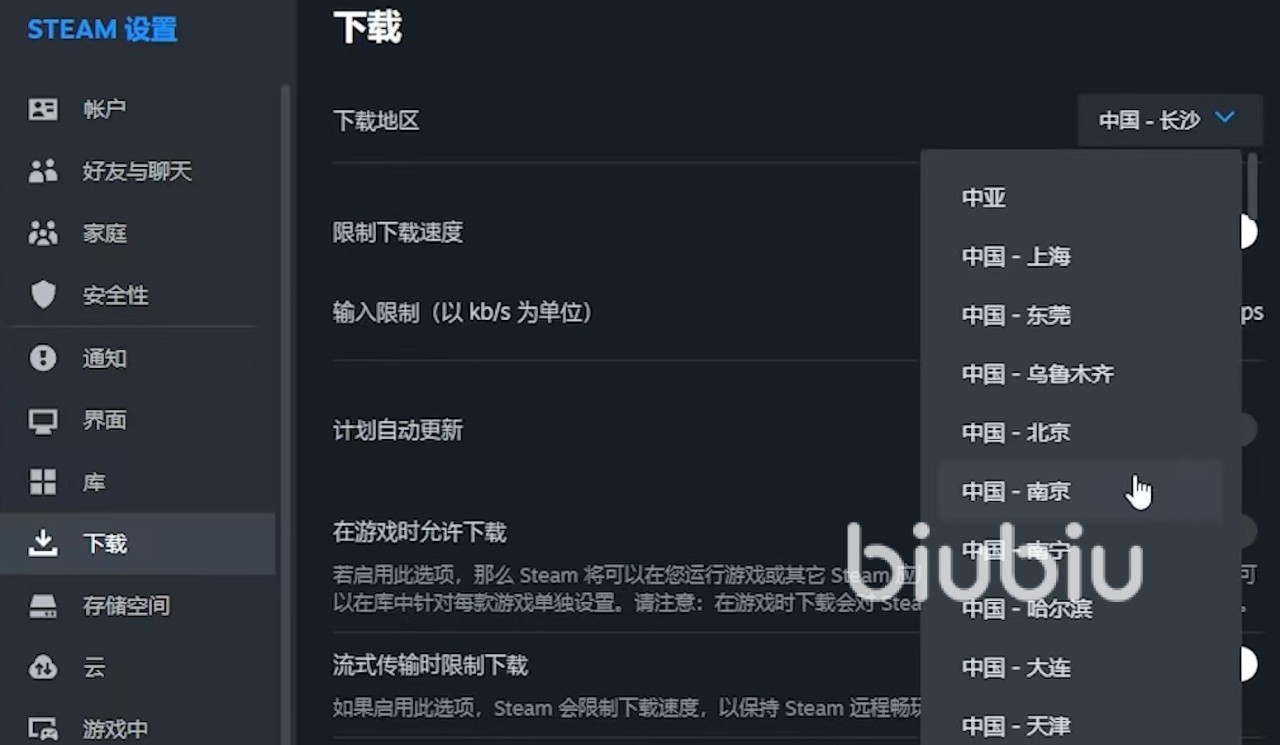 既然是下载过程中速度慢,那么最需要做的当然是看一下自身网络是否有问题。尽量使用有线网络,因为WiFi不稳定,将路由器或者是光猫断电30秒之后再打开,这样可以清理缓存。将其他后台程序关闭,节省出的网络流量都提供给下载使用。如果确实只能使用WiFi,那么尽量换5GHz,比2GHz要快一些,还能减少干扰。搞定了网络之后,接下来就是steam本身还需要进行一些调整,首先是更改下载地区,优先选择上海或者是北京,这是国内最快的节点,千万不要选欧美或是日韩。速度会很慢。点击将清除缓存,接下来将steam重启,关闭一切能够限制速度的选项。
