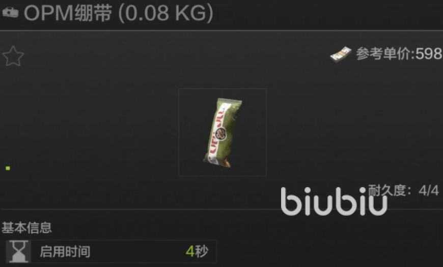 简易手术带为损坏状态唯一高效解决方案,使用后3秒内恢复85%移动速度与瞄准性能,推荐常备1-2个。其体积占用为12×12格,低于治疗包的16×16格,在负重受限时具备更高携带优先级。