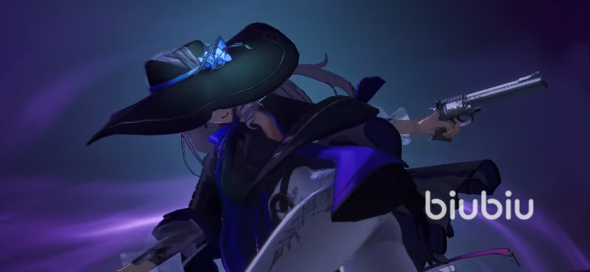 在角色美术表现上,九原采用高完成度的差异化设计语言:白金色长卷发搭配宽檐紫调礼帽,融合古典英伦剪裁与冷感气质,规避了常规少女系角色的甜系路径;白色挂脖式连衣裙进一步强化整体轮廓的修长感与动态平衡性,既体现端庄仪态,又暗藏疏离气场。这种“可远观、耐细看”的视觉策略,使其在角色池中具备显著记忆锚点,也成为大量玩家产生初始好感的关键动因。