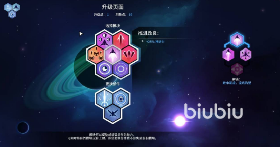 游戏以“生存即成长”为核心设计理念。初始阶段需专注规避敌方弹幕与碰撞伤害,依托蓝色护盾条吸收冲击,红色机体血条则代表最终生存底线。一旦双条归零,本次航行即告终结,但已解锁的部件、模块与升级路径将永久保留,支撑下一次更具优势的启程。