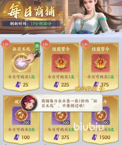 除主线外,多项零成本福利玩法同样不可忽视。招募系统每日提供一次免费单抽机会,无需消耗任何道具,务必参与。虽无保底机制,但持续抽取可提升获得高星斗者的概率,且S级强者对开荒效率具有质变影响。商店系统亦含高性价比入口:每日刷新的「征召玉兆」限时一折特惠,以极低金币成本即可购入,用于招募时触发S级斗者概率显著高于常规途径。S级斗者在技能强度、成长曲线与阵容适配性上全面优于低星角色,是前期战力构筑的优质基石。
