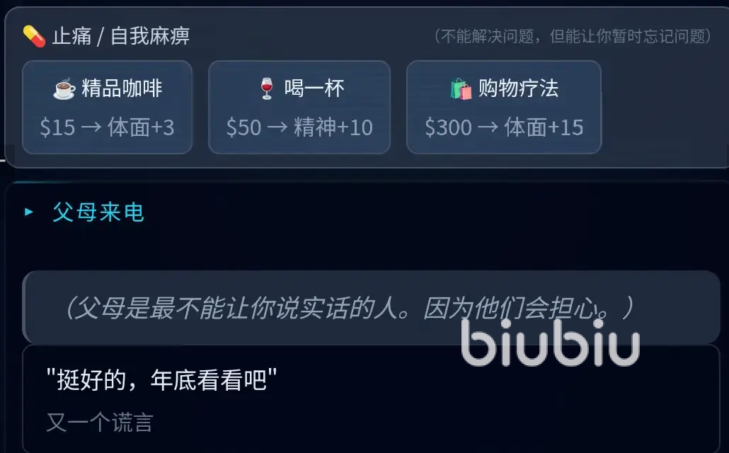 细节设计上,《牢美斩杀线》进一步延伸真实逻辑:当角色“体面值”低于阈值时,将无法通过基础面试环节;签证状态亦会动态变化,若逾期未续签,可能触发“黑户”判定,进而影响家庭关系维系、父母赡养义务履行等多重社会身份交互。这种对现代职场人精神负荷与制度约束的立体刻画,构成游戏核心叙事张力。