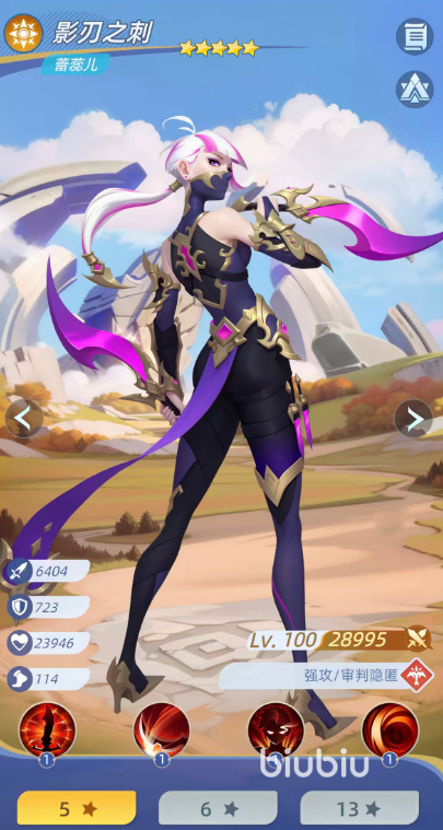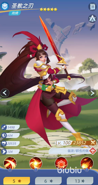 若需进一步强化残局收割能力,可选用影刃之刺蕾蕊儿作为罗兰的策略性替代或补充。她拥有独特的【审判】机制:对当前生命值最低的敌方单位造成298%物理伤害,并附加90%攻击力的真实伤害;同时使目标受到伤害提高20%、防御降低20%。若该次攻击成功击杀目标,则【审判】效果将自动重置并再次释放,伤害为原值的50%(整场战斗仅触发1次)。此外,其普攻亦可锁定生命最低单位,造成120%物理伤害。因此,蕾蕊儿在灼烧队中定位明确——专注残血终结,与罗兰形成前后排分工协作的双收割结构。