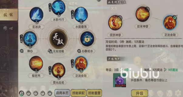 唐三藏的技能体系以水属性为核心驱动,关键技能包括水影代行(位移+伤害叠加)、玄冰决(冻结控制+持续水伤)与水魔震荡(高频段式打击)。面对精英敌人时,建议优先构建水属性连段,通过技能衔接触发水系增益效果,实现单体高压制与生命续航;对抗群怪则可组合释放技能,激活范围伤害判定,配合远程施法距离灵活走位,规避围攻风险。如来神掌进阶为虚拟神掌后,可召唤阵法金刚协同作战,上限为2尊,兼具承伤缓冲与补充输出功能,在BOSS战或突发危机中具有战略价值。