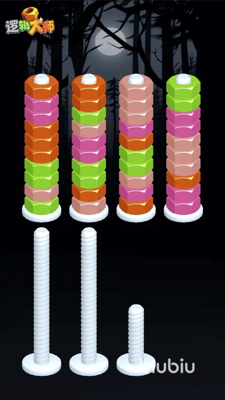 在“搬家”类关卡中,系统要求将相同颜色的螺母统一整合至同一轨道内。该机制对操作前瞻性提出更高要求:每次移动前均需评估其对剩余空位、相邻颜色匹配及后续路径的影响。例如引入黄色螺母时,必须同步推演其是否会导致其他颜色无法按规则衔接,从而造成死局。此类设计强化了策略预演与系统性思维训练价值。