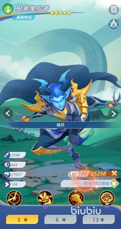 核心控场位推荐极寒掌控者——泰斯特拉。该角色为预售限定精灵,定位前排兼具输出与强控。其主动技能可对敌方随机一名后排单位造成298%攻击力的冰属性伤害,并附带60%基础冰冻概率;当技能等级提升后,伤害上限增至417%,冰冻触发率同步提升至100%。这意味着在中后期战斗中,泰斯特拉每回合均可稳定冻结一名敌方单位,使其跳过行动阶段。此外,该角色拥有自我治疗机制,在承受伤害时有30%几率为自身施加一层“攻击者减伤”效果,进一步削弱敌方输出效率,显著延长其战场存活时间,保障冰冻链的持续运转。
