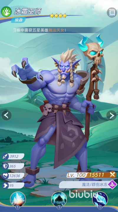 群控补充位推荐四星角色冰霜巫师埃森。尽管星级较低,但其“急冻术”在群体范围内具备可观的AOE冰伤(194%魔法伤害)与额外减益效果。虽然初始冰冻概率仅为20%,但可通过装备、符文及队友增益叠加触发率,实现全队冰冻覆盖率的整体跃升。该角色适合作为功能型副C,在前排控场衔接后扩大冻结范围,为后续集火创造理想环境。