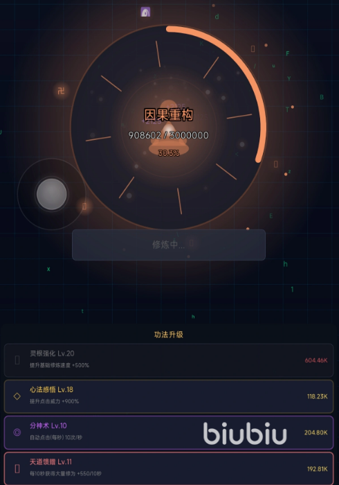 角色设计融合义体改造与修真气韵,立绘风格鲜明统一;战斗特效节奏紧凑、粒子表现细腻。技能系统支持自由搭配——例如将“分神术”与“神经接口强化”组合,衍生出多维战术路径,策略深度与个性化成长并重。