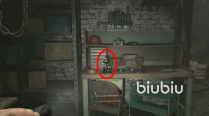 7、在拘留室外侧走廊的另一端,可以找到一个工作坊,打开门之后里面有个破旧的工作桌,左侧可找到该道具。