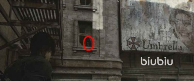 23、警局大楼附近,有个保护伞公司广告牌,左边窗子上有。