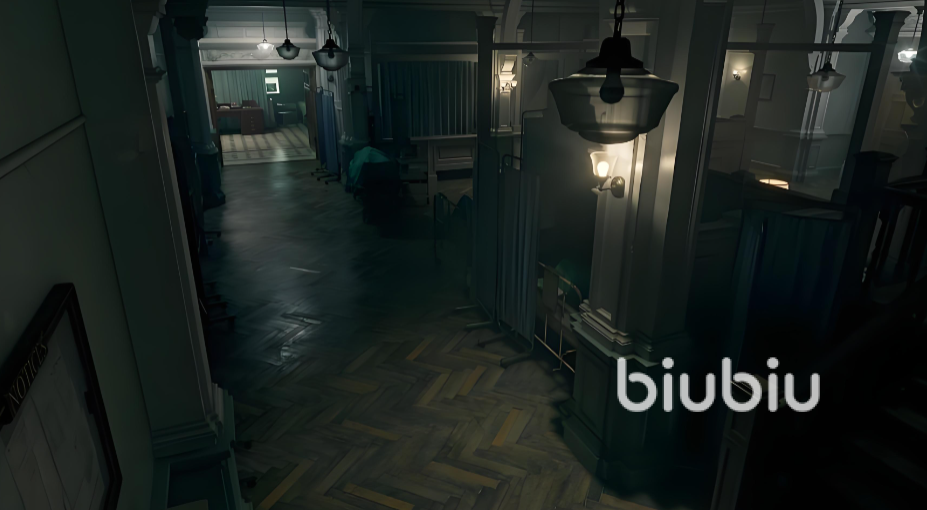 疗养院二楼病房与护士站密室逃脱这是游戏初期的核心密室逃脱章节,玩家需在黑暗环境中躲避怪物女孩,并收集关键道具开启卷帘门。