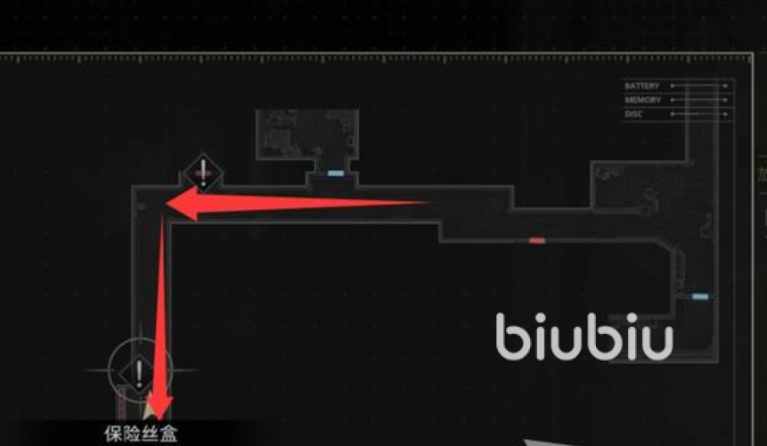 逃离密室拿到保险丝之后,怪物就会再次追击。迅速返回走廊尽头,把保险丝插进卷帘门的装置里,触发剧情,成功逃离密室区域。